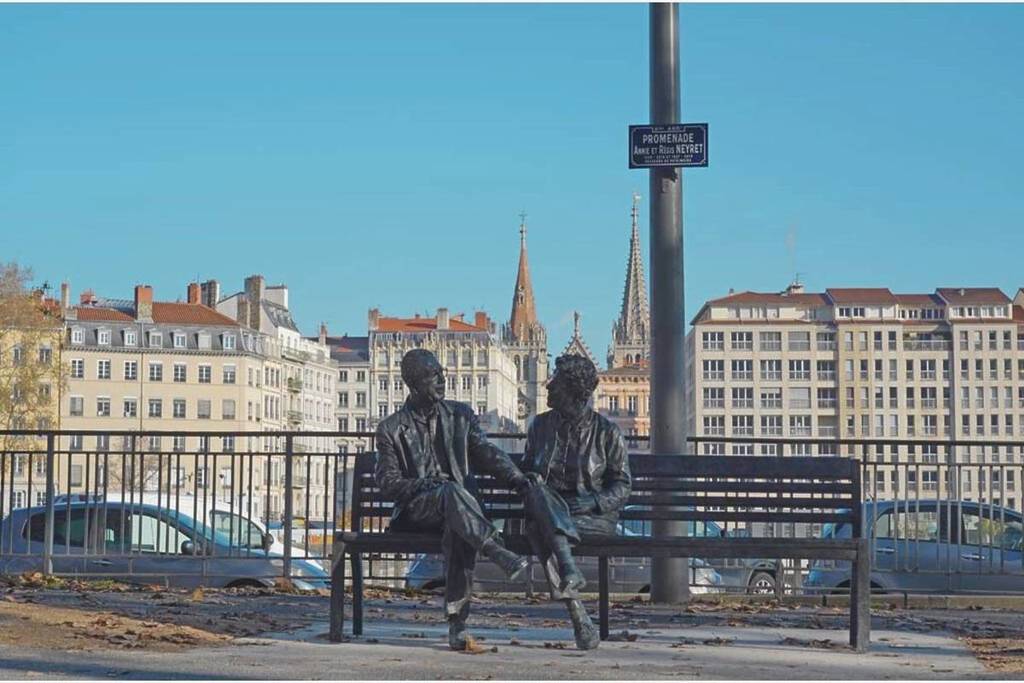 Après le décés en 2019 à quelques mois d’intervalles d’Annie et Régis Neyret, la ville de Lyon décide en 2023 de leur rendre hommage sur le quai Romain-Rolland, non loin de la maison Thomassin où le couple vécut durant près de 35 ans. Une statue en bronze où leurs regards se croisent une dernière fois, pour l’éternité. Sur la plaque de la promenade qui porte désormais leur nom, on peut lire : « Annie et Régis Neyret, passeurs de patrimoine ». Voilà finalement comment bien résumer tout cela.